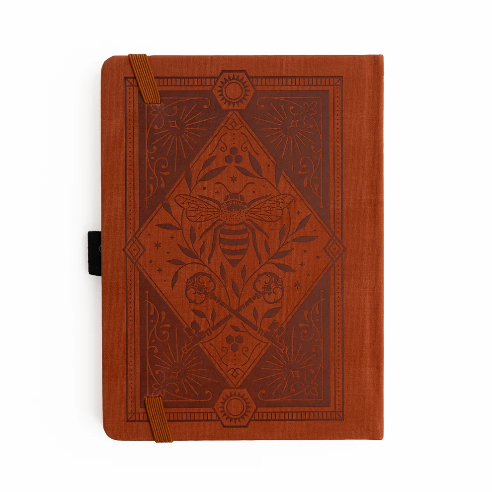 A warm, earthy notebook featuring our Keeper of the Bees design in rich rust. Detailed metallic foil artwork brings the bee, keys, and floral motifs to life—offering a timeless, giftable piece for creatives and journalers alike.