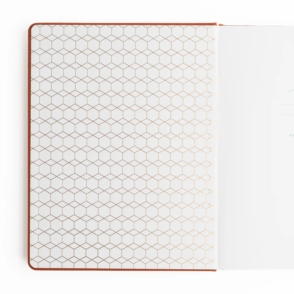 - Cover: Vegan Leather with gold + deep brown foil detailing