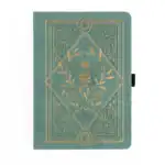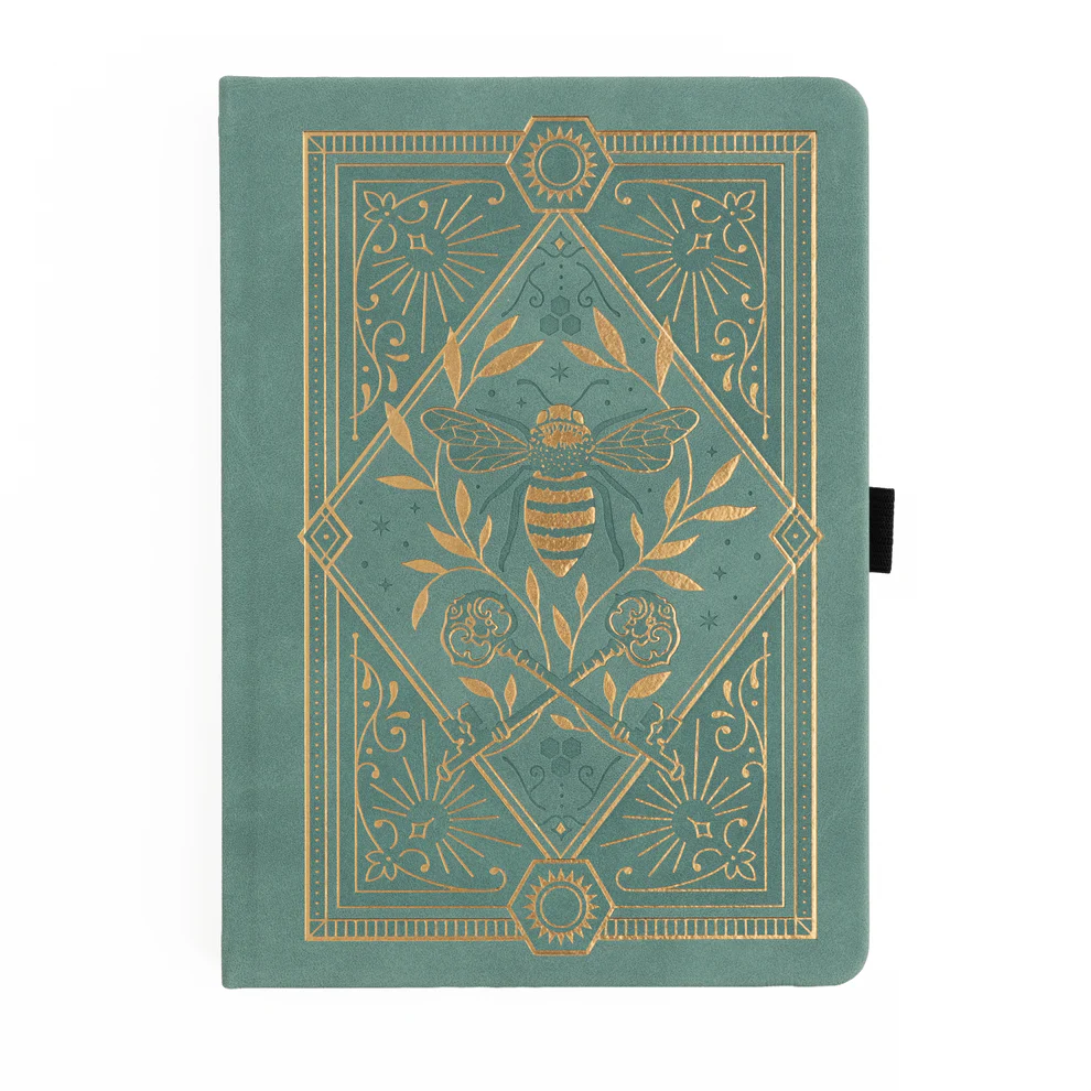 A serene, giftable notebook wrapped in soft teal vegan leather, featuring our signature Keeper of the Bees artwork. Gold foil detailing highlights the bee, keys, and botanical elements—creating a luminous, heirloom-inspired design customers love.