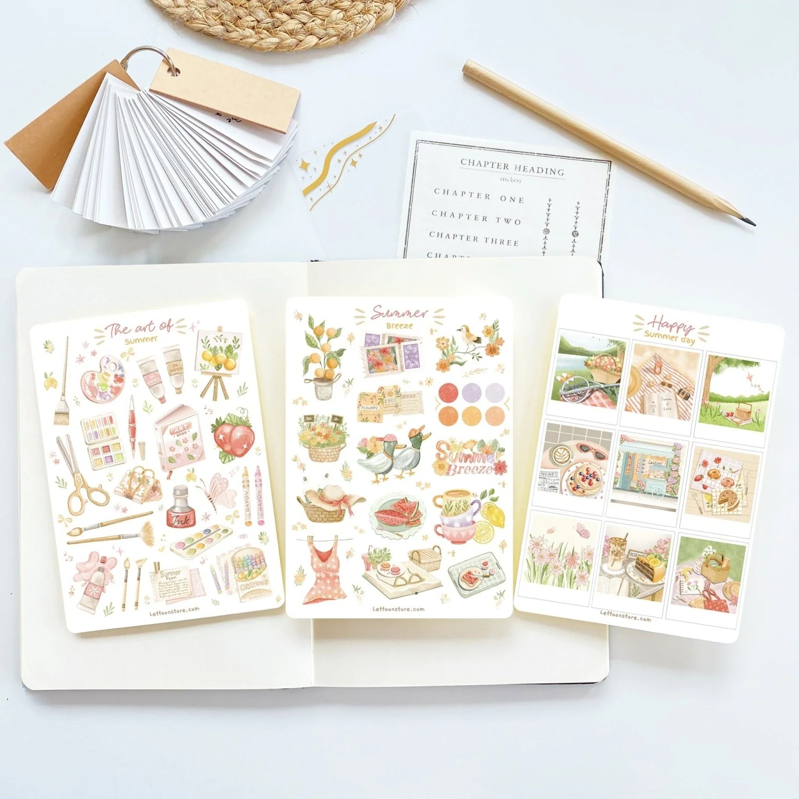 The ‘Lovely Summer’ set containing 3 sticker sheets: The Art of Summer, Happy Summer Day, and Summer Breeze.