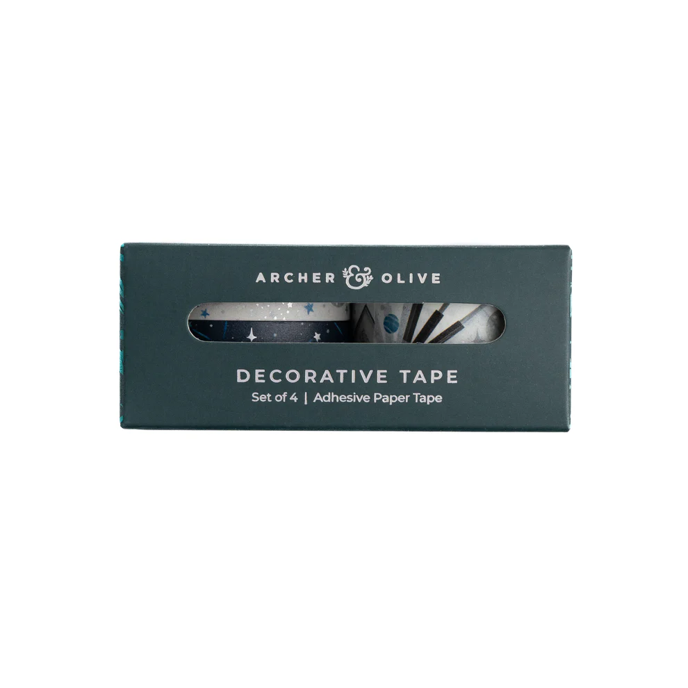 - Included: Coordinated set of 4 decorative washi tape rolls