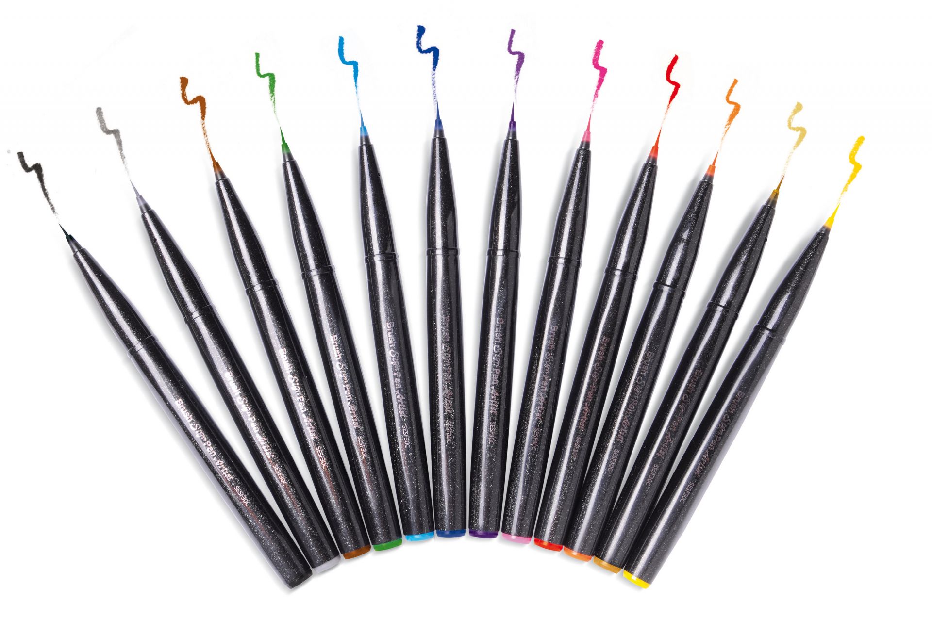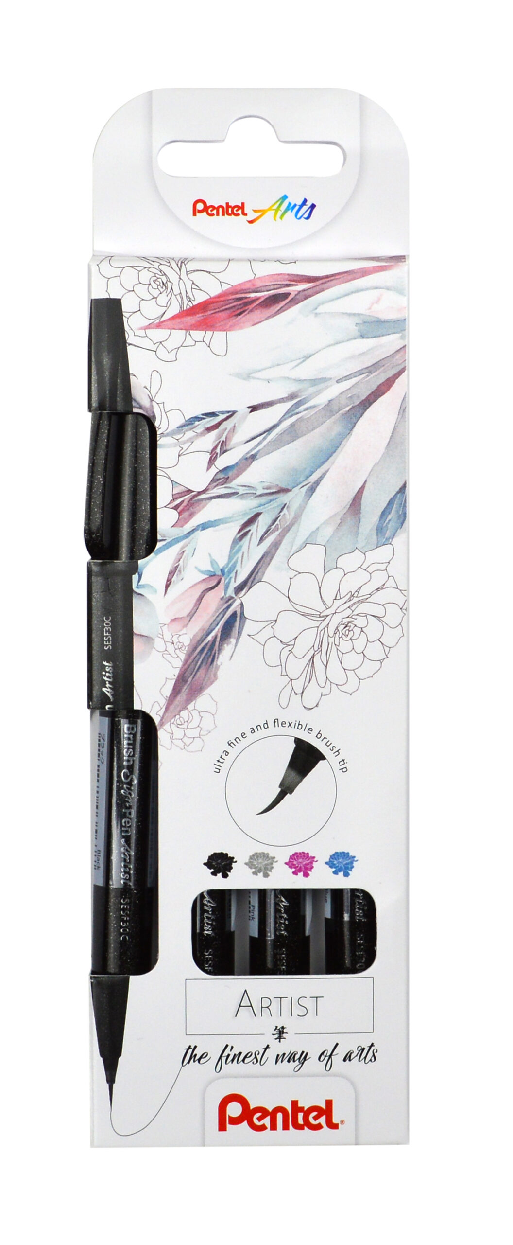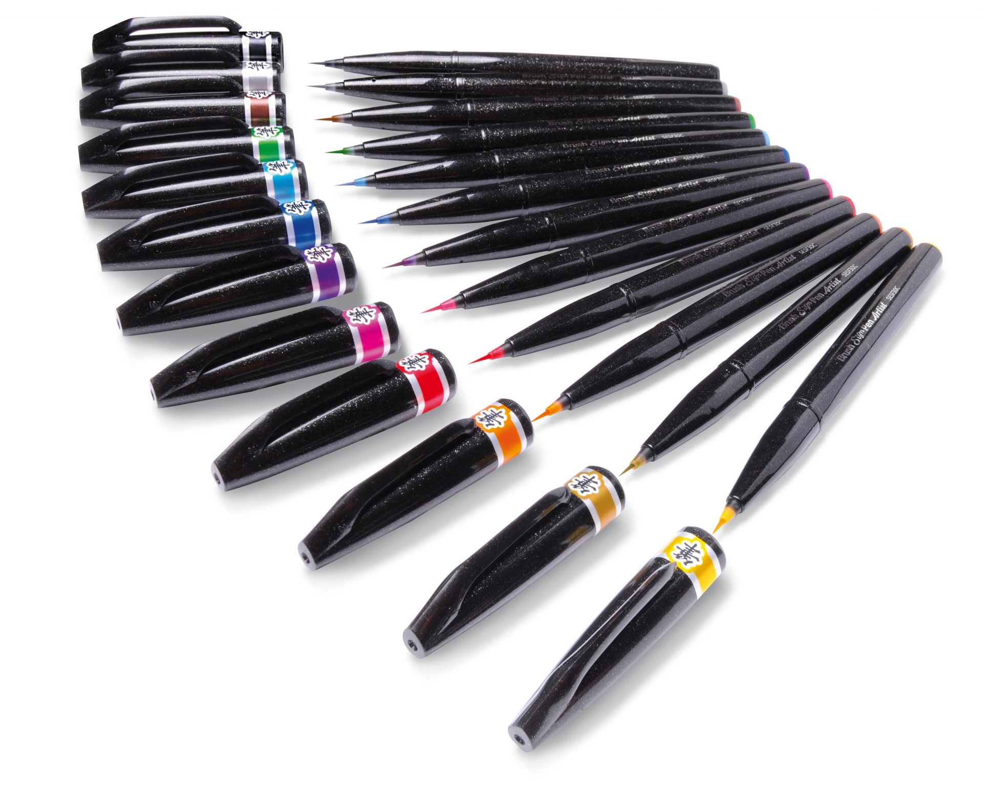 - Pentel Artist is the extra-fine brush pen for professionals and one of the thinnest brush pens on the German market. Like the Pentel Brush Sign Pen, the Pentel Artist can be used like a brush thanks to its nylon fiber tip. Ideal for extra-fine applications in hand lettering, bullet journaling, or outlining in illustrations and sketches. Available in 12 ink colors. Black barrel with a metallic effect and a colored band on the cap. The extra-fine brush tip allows for line widths of approximately 0.03–2 mm.