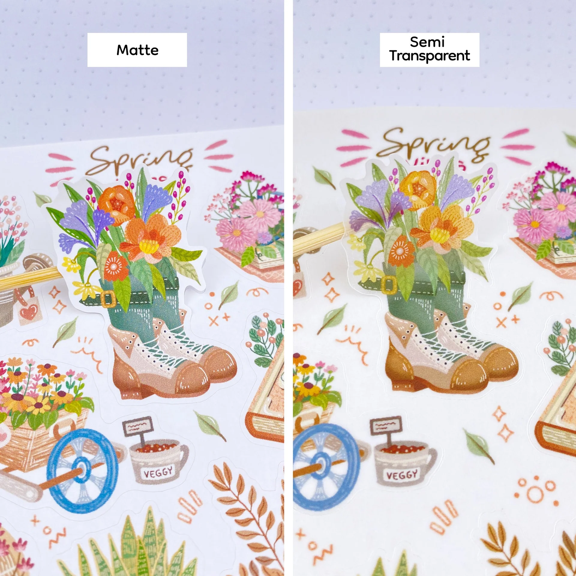 Beautiful, detailed spring stickers to give yourself (or others) that cozy spring vibe.