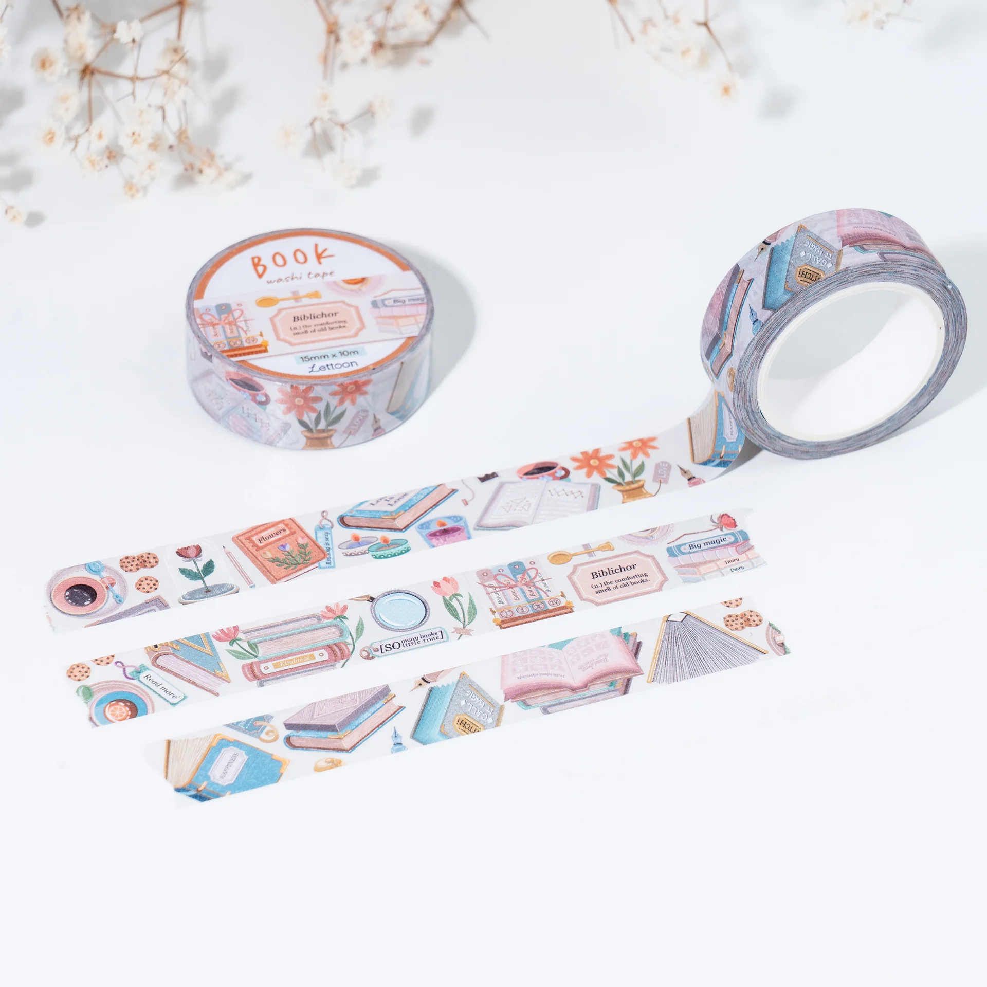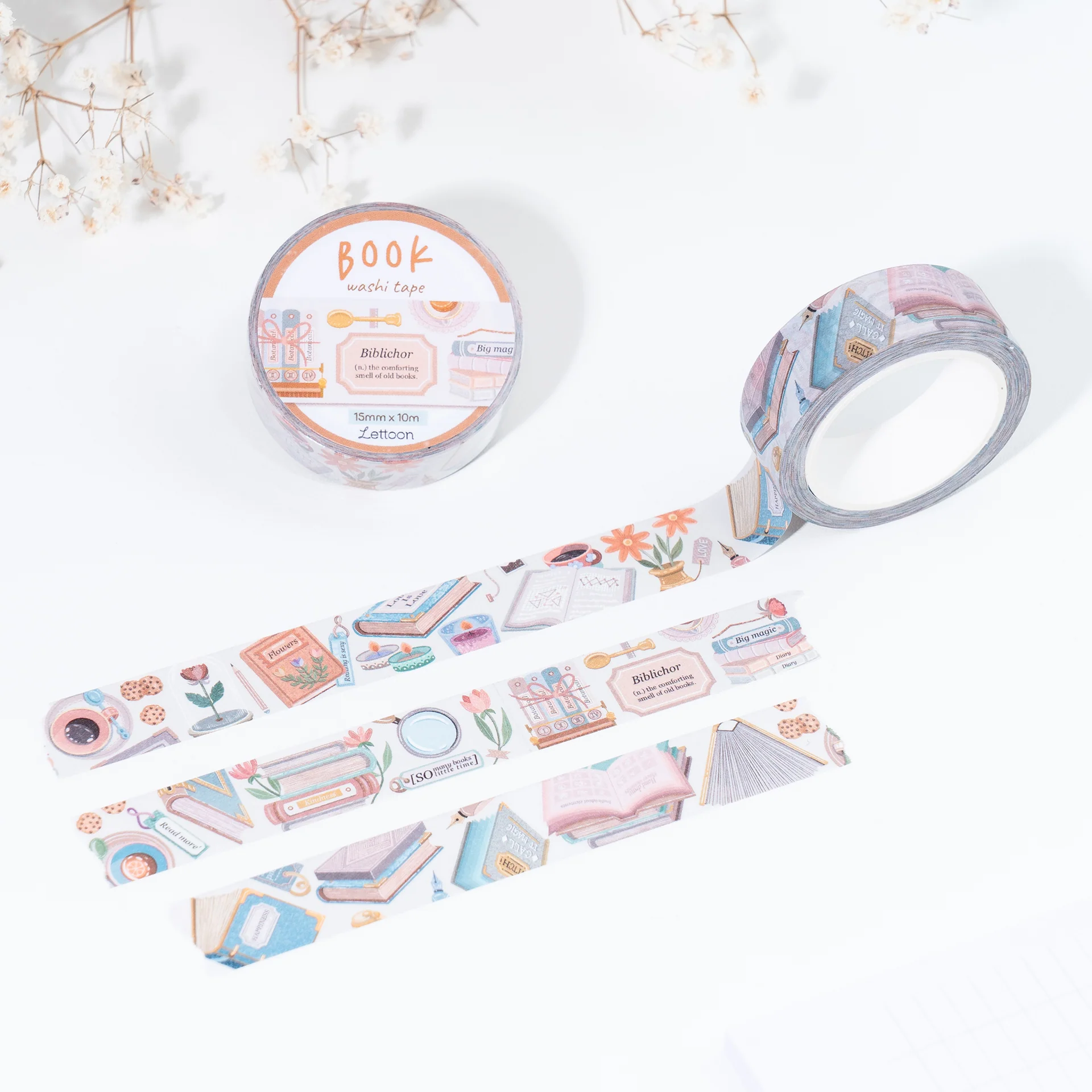 The washi tape is 10 meters long and 15 millimeters wide