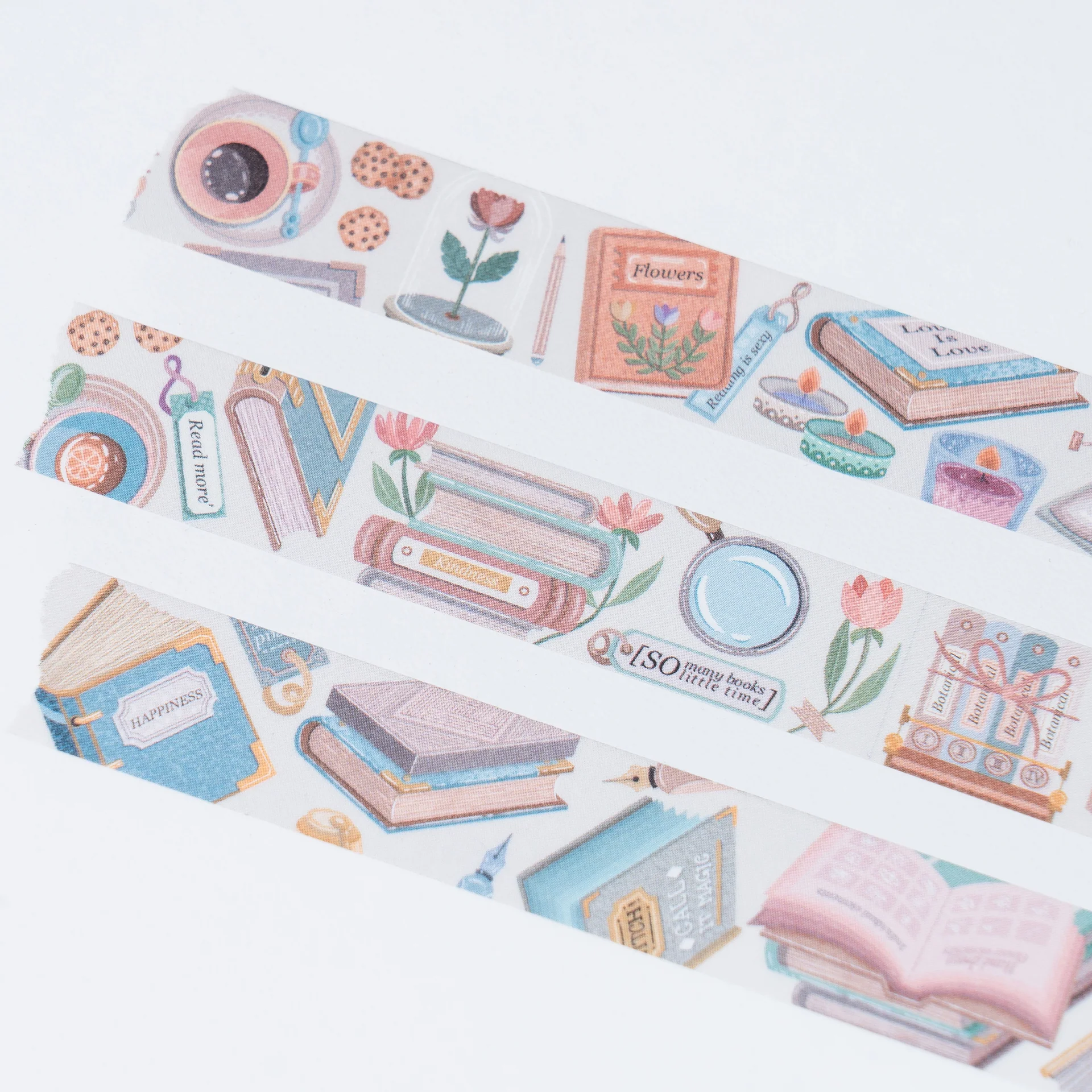 Book Washi Tape with coffee, cookies, books, and more. Perfect for decorating your bullet journal and planner.
